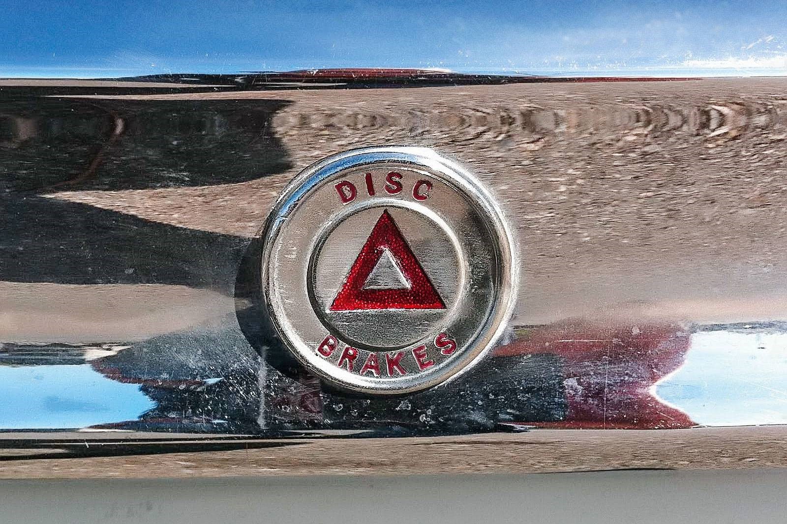 O Mark 2 da Jaguar ganhou uma série de evoluções mecânicas em relação ao Mark 1 e uma delas ocorreu no sistema de freios, com discos no lugar dos velhos tambores. A novidade veio tímida através de um pequeno emblema colado ao centro no para-choque traseiro. Mas estava lá, à mostra.