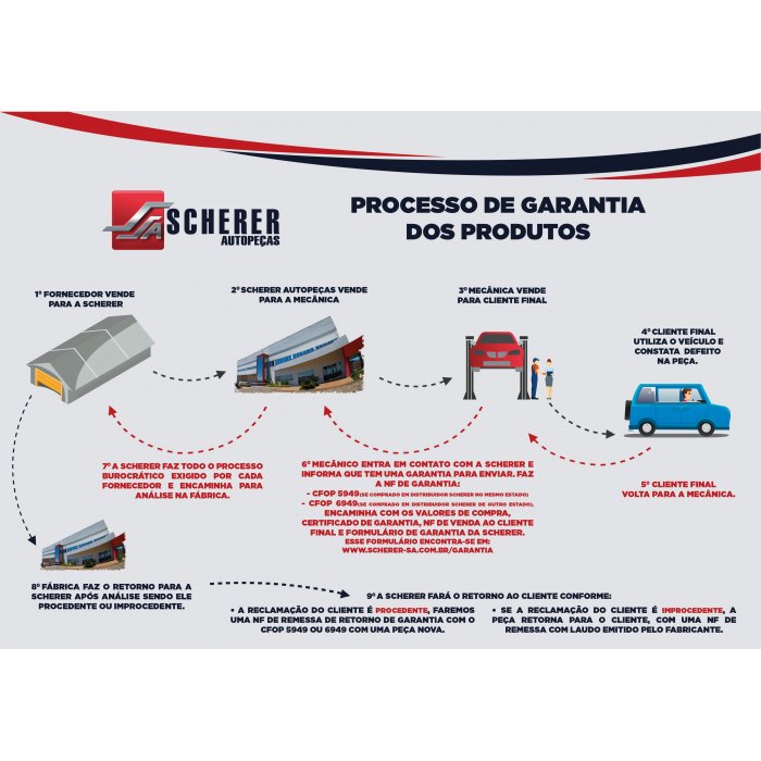 Acesse o site da Scherer: http://www.scherer-sa.com.br/garantia, onde você irá encontrar mais informações sobre a Garantia e quais os procedimentos para enviar mercadoria que está no prazo de garantia, além de ter acesso ao formulário de solicitação de garantia, que deve ser preenchido e anexo junto a solicitação.